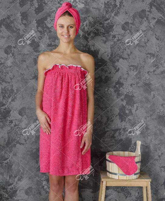 Малиновый женский набор для бани и сауны – это комплект красивых и удобных аксессуаров, изготовленных из мягкой махровой ткани. Они помогут вам в полной мере расслабиться и насладиться отдыхом, при этом оставаясь очаровательной и нарядной. В комплект входят: