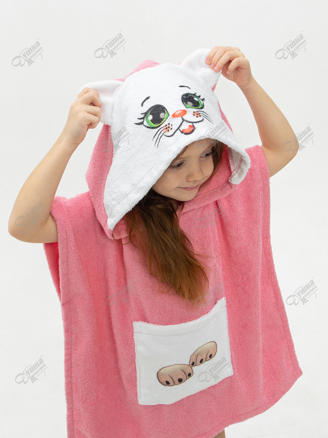 Нарядное детское пончо "Кошечка" розовое изготовлено из махровой ткани и высококачественной бамбуковой ткани производства Турции. Забавный рисунок нанесен методом печати, благодаря чему не смывается и не теряет яркости красок в течение всего периода использования. Плотность – 300 г/м. Мягкая и легкая ткань отлично поглощает влагу. Пончо не теряет изначального цвета и формы даже после многочисленных стирок в горячей воде. Удобная, практичная и долговечная модель. Теги: Для детей, Пончо