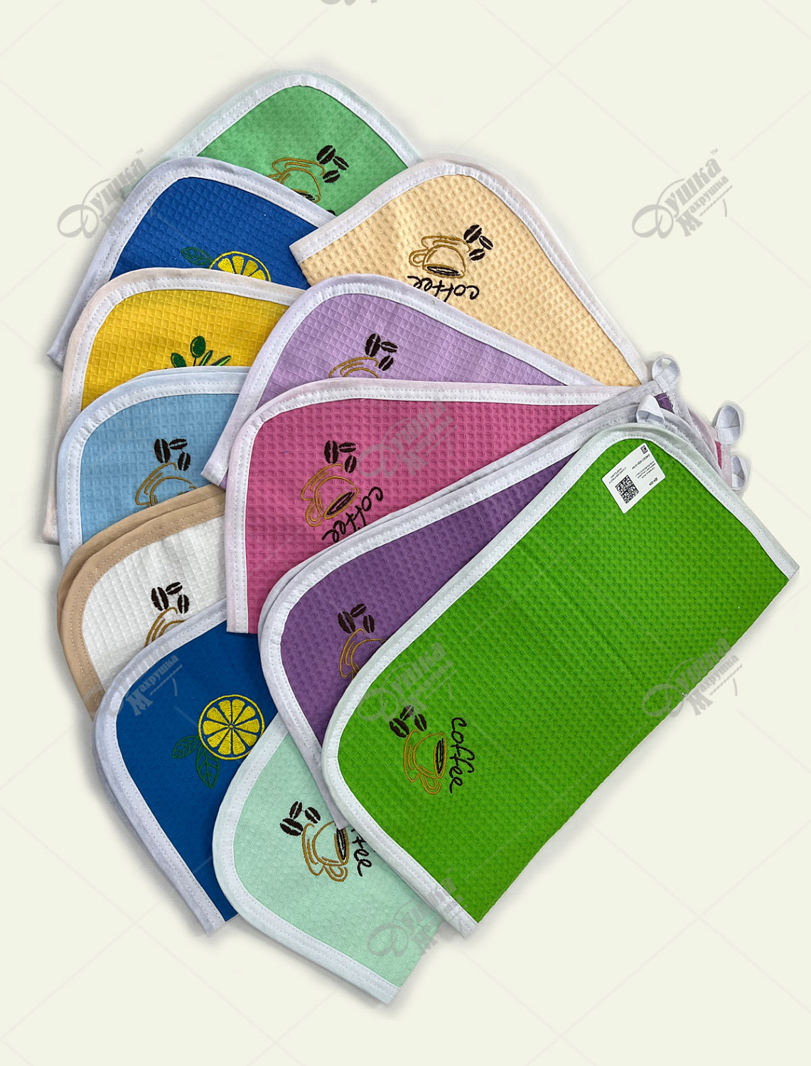 Салфетка вафельная с вышивкой изготовлена из 100% хлопка, отлично впитывает влагу и не раздражает самую чувствительную кожу. Изделие не линяет при стирке и даже при интенсивном использовании долго сохраняет изначальный внешний вид. Имеет универсальный размер. Красивый и практичный вариант для гостиничного бизнеса, салонов красоты, СПА-центров. Может использоваться в качестве домашнего текстиля для разнообразных косметических процедур. Наличие по цветам уточняйте у менеджера при каждом заказе. Теги: Полотенца, Для кухни