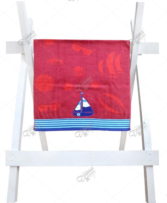 Полотенце махровое пляжное с жаккардовыми рисунками размером 80 х 160 см. Вышитая аппликация Кораблик". Теги: Полотенца, С вышивкой