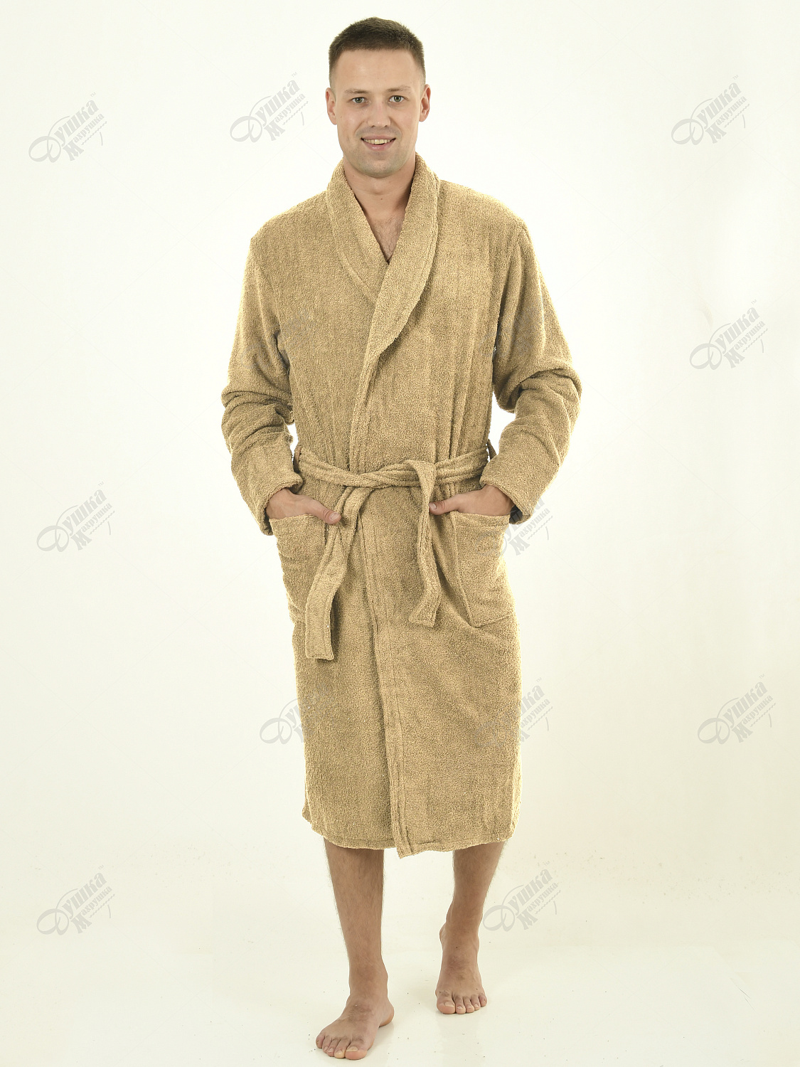 Удобный бежевый мужской халат с воротником «шалька» изготовлен из 100% хлопка. Плотность – 400 г/м². Мягкая махровая ткань хорошо впитывает влагу, гигроскопична, не линяет, отлично переносит многочисленные стирки. Шалька придает изделию солидный и респектабельный вид. Вместо пуговиц предусмотрен широкий пояс – это позволяет быстро и плотно запахнуть халат на теле. Отличный вариант для бань, саун, гостиничных комплексов, а также в качестве повседневной домашней одежды после водных процедур. Наличие по размерам и цветам уточняйте у менеджера при каждом заказе. Теги: Распродажа