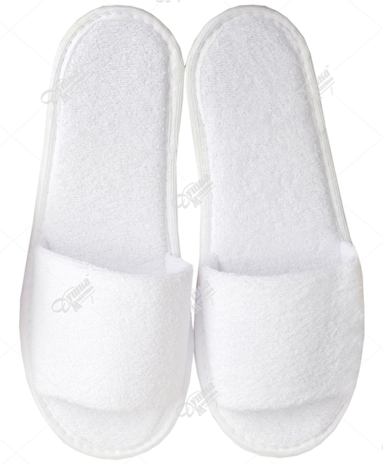 Тапочки «открытый мыс» для сауны, бани и бассейна. Подошва ЭВА толщиной 4,5 мм. Ткань верха и следа - махровая ткань. Окантованы по кругу, союзка спанбонд. Тапочки представлены в нескольких размерах, поэтому подойдут для любого. Теги: Текстиль для гостиниц, Тапочки