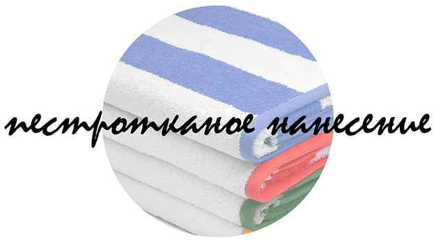 Логотип наносится путем переплетения нитей разного цвета в структуре будущего изделия.