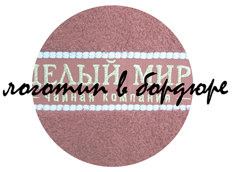 Логотип наносится в процессе производства в бордюре полотенца: с помощью полиэфира или вискозной нити.
